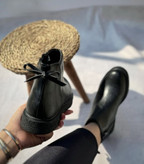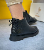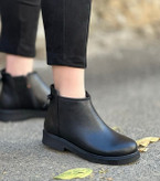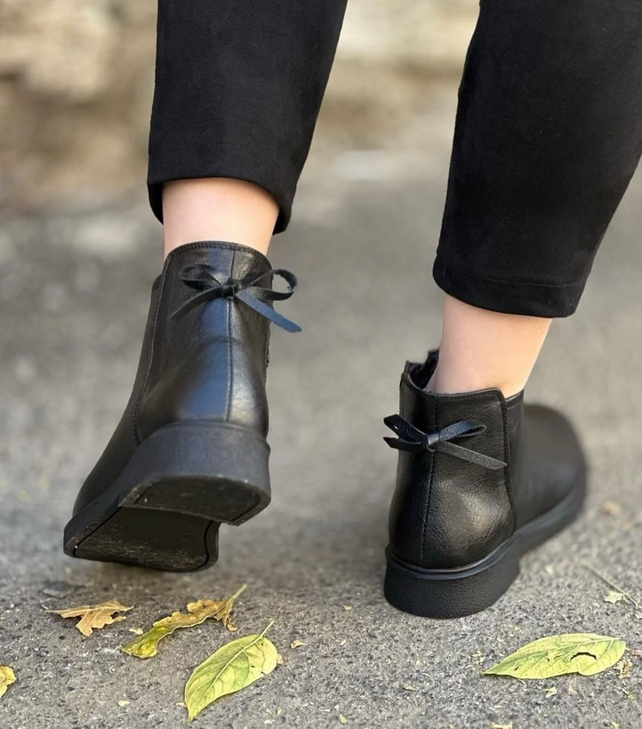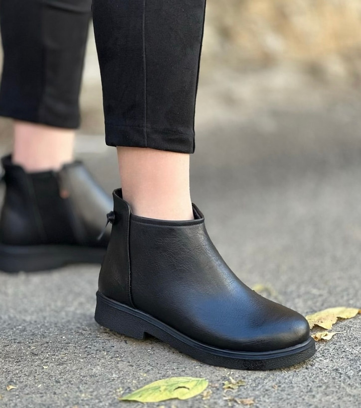 جنس رویه سوگوی پشت چرم، زیره پی یو ضدسایش و بسیارمقاوم، زیپ خارجی، کفی طبی (پاپیون ندارد)