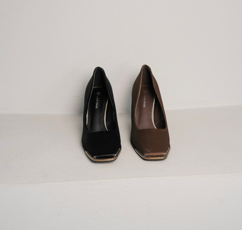 کفش پاشنه سه سانت نوک تیز زنانه برند یونای مشکی-نسکافه کد۶۰